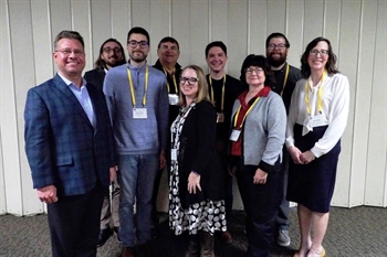 ILA Executive Director Cyndi Robinson (center) and ILA Legislative Consultant Derek Blaida (far left) pose with some of the legislators and attendees.