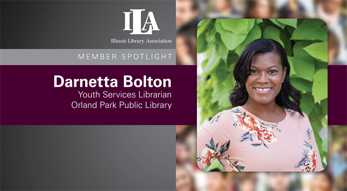 This week's member spotlight is on Darnetta Bolton. Darnetta is a Youth Services Librarian at the Orland Park Public Library. She is a member of the Reaching Forward Forum and previously served as co-chair of the 2020 ILA Conference Program Committee. We asked Darnetta to tell us a little bit about herself and to answer a few professional and amusing questions. Keep reading to find out more about Darnetta.