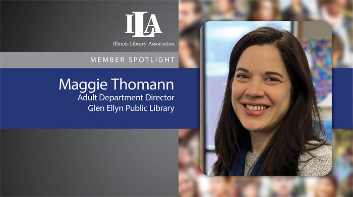 This week's member spotlight is on Maggie Thomann. Maggie is the Adult Department Director at the Glen Ellyn Public Library. She currently serves on the ILA Awards Committee and has also served on the ILA Conference Program Committee, the iREAD Committee, and the Young Adult Services Forum (YASF).