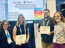 Winning materials were showcased during the PR Xchange Event on June 28, where delegates could view winning materials in all categories, followed by the awards ceremony. Geneva Public Library staff members Alex Hanold and Chaz Baechler attended the ceremony to accept the awards.