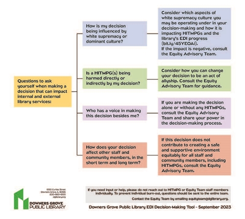 Downers Grove Public Library’s EDI Decision-Making Tool. Credit: Cindy Khatri and Van McGary.