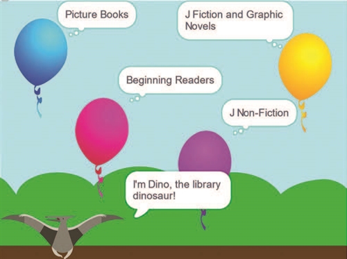 The quiz opens with a character, Dino the Library Dinosaur. Dino asks patrons what kind of book they want to read: Picture Books, Beginning Readers, J Fiction or Graphic Novel, or J Non-Fiction. Once a patron makes their choice, they are then prompted to choose a topic or genre to read about, such as “Sports” or “A Mystery.” These topics are different for each kind of book to give patrons as many options as possible. After choosing a topic, patrons then choose a more specific topic, like “Soccer” or “A mystery I can solve”. Then, the quiz makes a drum roll sound effect, and Dino reveals a book recommendation tailored to the patron’s choices. The patron also sees the book’s cover and a QR code that directs the patron to the book in the library’s catalog so they can place a hold on the title. The book a patron sees is based directly on their choices; the quiz can recommend more than fifty different titles. This gives patrons the best of both worlds – they get a book recommendation tailored to their personal interests without having to wait for a librarian to respond to an online form.