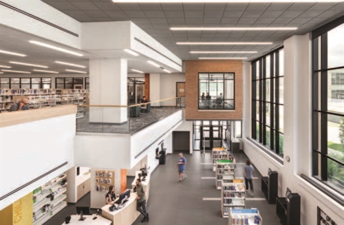 The Rockford Public Library invites people in with 4 terraces, an attached programming venue with room for up to 180 people, and a three-story gallery space which brings in museum quality travelling exhibits for the library’s patrons to experience. The library features dedicated spaces for job creation with resources for the unemployed including classes, interview prep and skills training, partnership with local businesses, video and audio courses, and enhanced use of the makerspace to promote developing the skillsets of the local workforce to support area businesses. Additional areas of focus include a marketplace, interactive youth services, a maker lab and studios, a teen zone, quiet reading rooms, a local history and archive, and an outdoor play space.