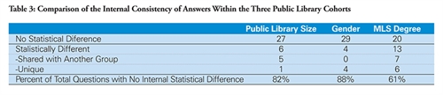 Table 3: Comparison of the Internal Consistency of Answers Within the Three Public Library Cohorts