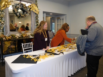 Attendees picking up their name badges, eager to meet with their legislators and staff.