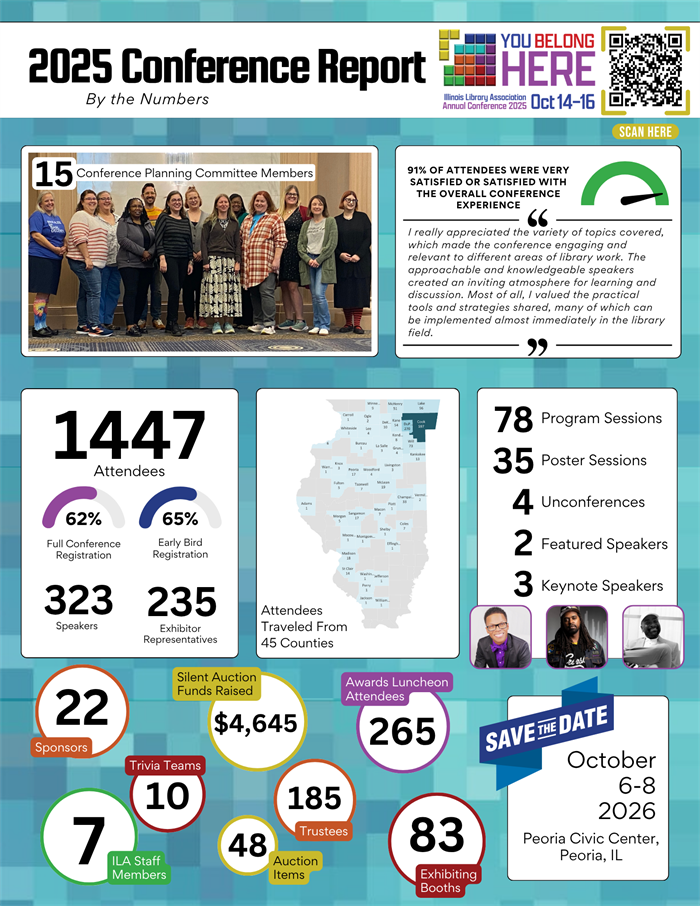 ILA's 2025 Annual Conference ran from October 14-16 at the beautiful Donald E. Stephens Convention Center in Rosemont, IL. This year's theme, You Belong Here, celebrates inclusivity and belonging for patrons and library workers alike with the ILA.