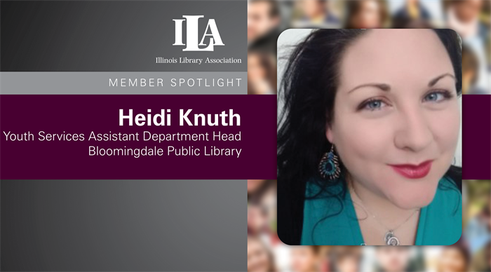 This week's member spotlight is on Heidi Knuth. Heidi is the assistant department head for youth services at Bloomingdale Public Library. She is a former co-chair of the 2022 ILA Conference Program Committee, a former member of the ILA Intellectual Freedom Committee and the ILA Youth Services Forum, and a former manager of the Reaching Forward Forum.