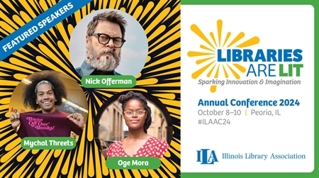 Scheduled for October 8-10 in Peoria, Illinois, the 2024 ILA Annual Conference promises to take participants on a journey igniting imagination and innovation under the theme "Libraries are Lit: Sparking Innovation and Imagination." The Illinois library community will come together to celebrate its role in fostering creativity, inspiring fresh ideas, and driving innovation within communities across the state.