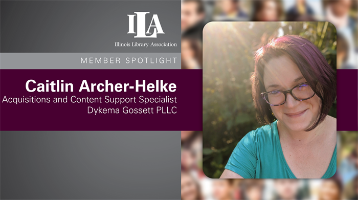 This week's member spotlight is on Caitlin Archer-Helke. Caitlin is the Acquisitions and Content Support Specialist at Dykema Gossett PLLC. She a current member of the ILA Fundraising Committee and served on the ILA Conference Program Committee, 2021. We asked Caitlin to tell us a little about herself and answer a few professional and amusing questions. Continue reading to find out more about Caitlin.