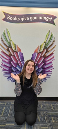 Description: The photo showcases the library's newly installed wing wall, which has become a popular addition to the library.