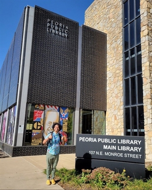 Description: Librarian and literacy ambassador Mychal Threets visited the Peoria Public Library while in town for the 2024 ILA Annual Conference, where he served as the President's Program speaker.