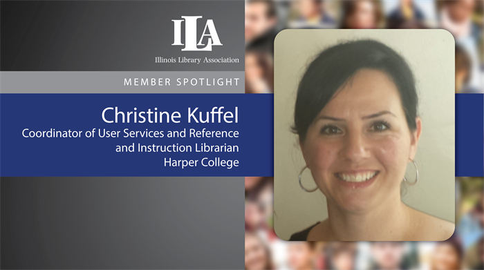 This week's ILA member spotlight shines on Christine Kuffel. Christine is the coordinator of user services and a reference/instruction librarian at Harper College in Palatine. She is the manager of the ILA Marketing Forum.