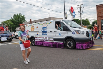 Anita Driver, director of Jerseyville Public Library, pictured with van in parade.