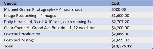 Once the campaign direction and design were approved, production began, which was completely new territory. A photo shoot with a professional photographer, image retouching, paid media scheduling and more were a significant investment of nearly $13,400.00.