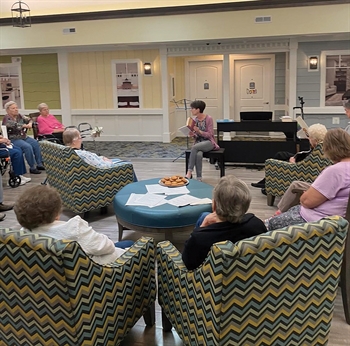 At the new Senior StoryTime programs, Smilak and Pruitt read a story, lead a group sing-along with ukulele and piano, and do a craft with the seniors. Depending on which facility they’re at, there are usually between 10-20 attendees.