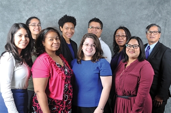 Back row, left to right: Ariel Erbacher, Jasmine Kirby, Omar Ramirez, April Hummons, and Theodore Quiballo. Front row, left to right: Araceli Moreno, Anjelica Rufus-Barnes, Nisha Mody, and Monica Tapia. Not pictured: Rebecca Arriola, Elisandro Cabada, Jesus Espinoza, and Alison C. Rollins